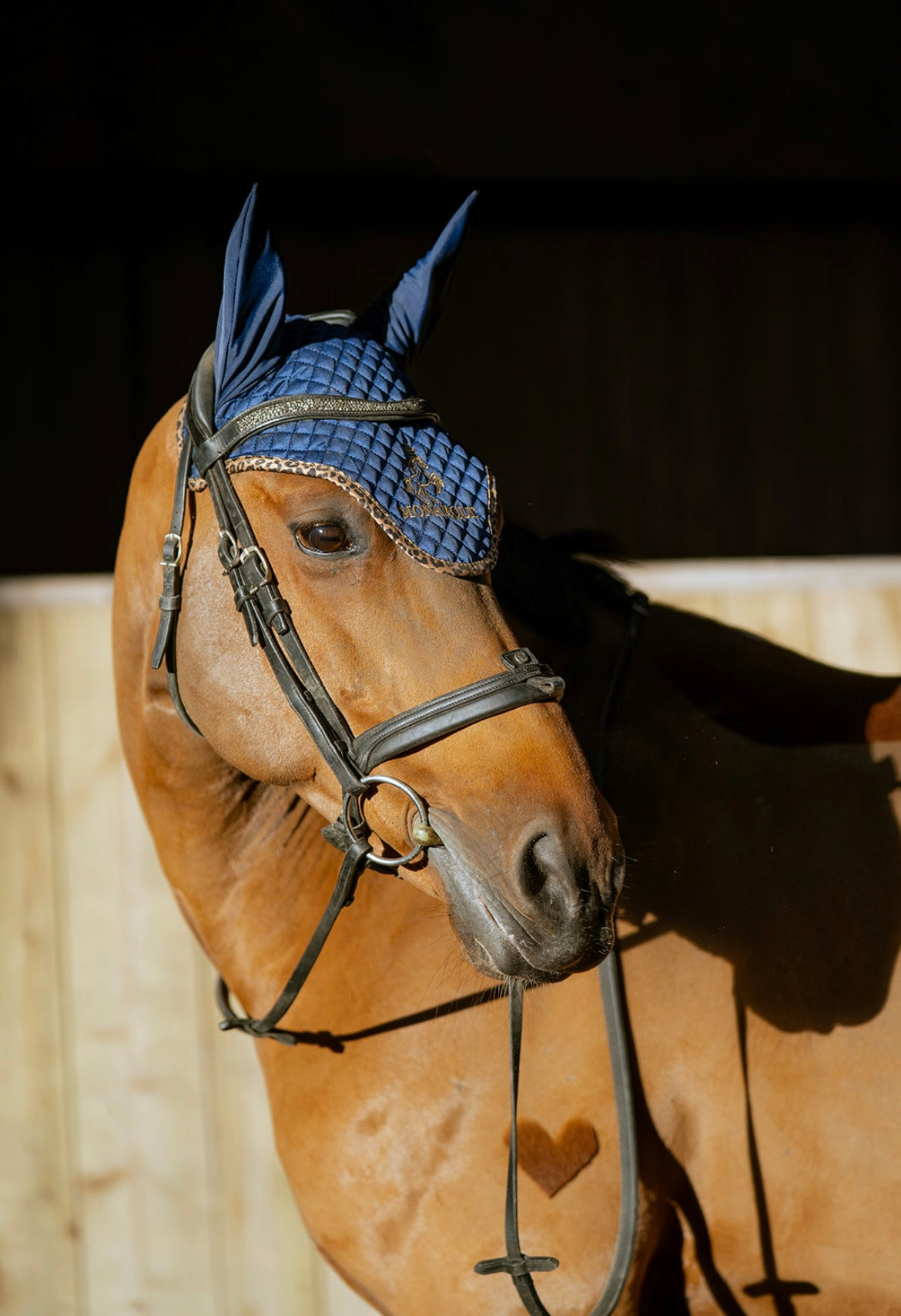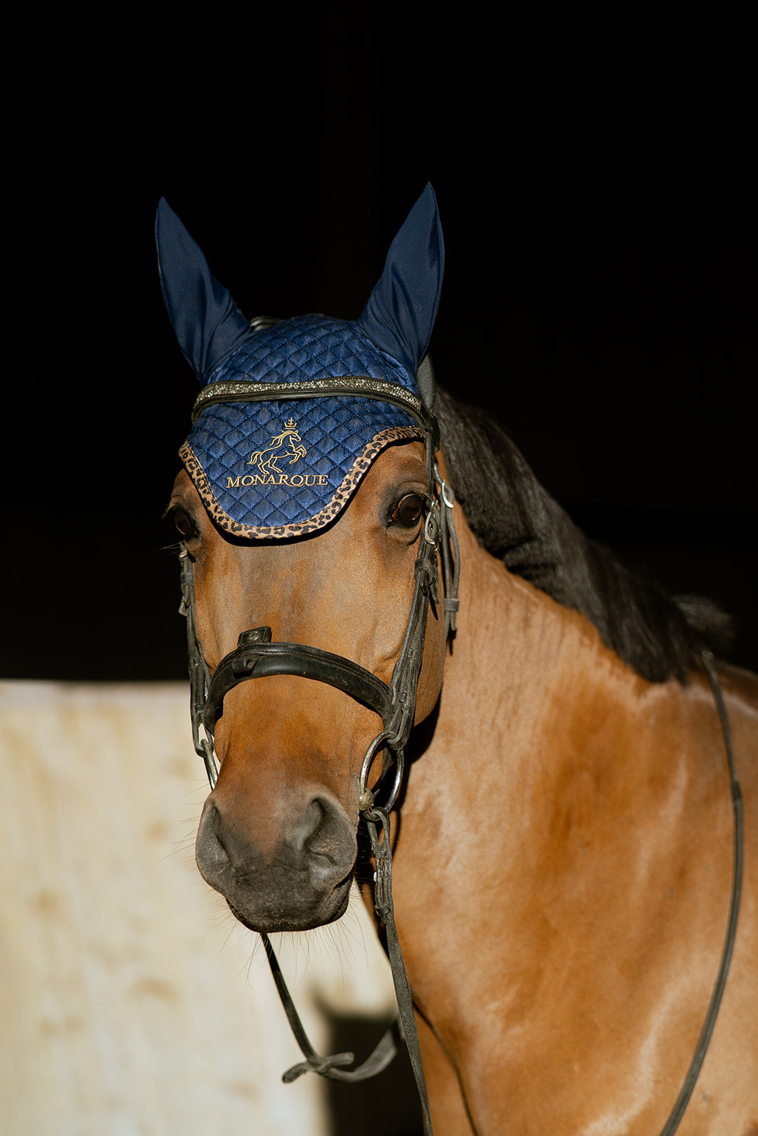 Bonnet Elena marine bleu profond, touche léopard, allie confort, réduction du bruit et style. Ajusté et élégant, il complète parfaitement la collection Monarque.